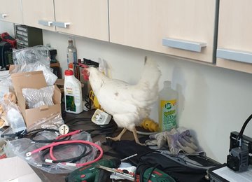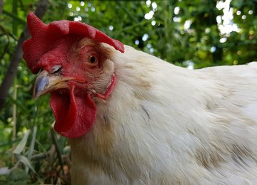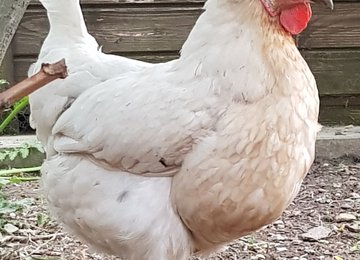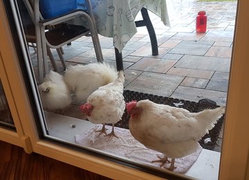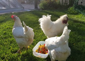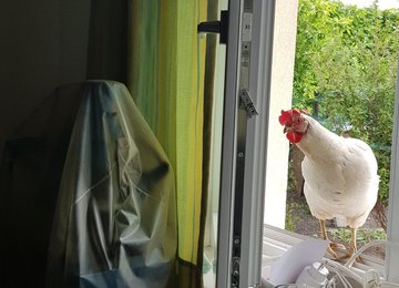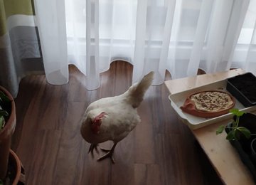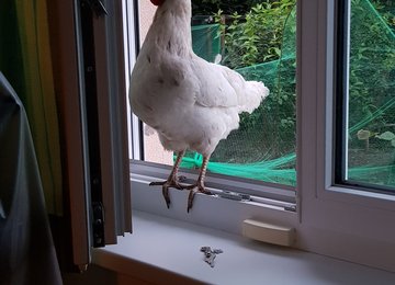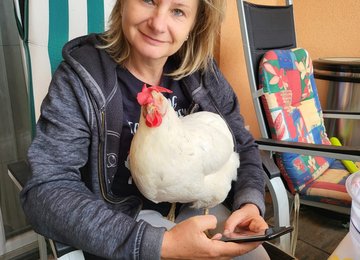 Trudi wurde aus einer Legebatterie ausgestallt und kam über den Verein "Rettet das Huhn" zu mir. Nach einer kurzen Eingewöhnungsphase wurde sie immer zutraulicher. Sie kam näher und näher und wollte schlussendlich hochgehoben werden. So begann eine intensive Zeit für uns in der Trudl zu meiner Lehrerin wurde. Sie genoss entspannende Cranio Sacrale Behandlungen, insbesondere als es Stress durch heranwachsende Hähne im Stall gab genoß. Ich durfte mit ihr Tierkommunikation üben und erfuhr wie es in dieser Legebatterie war. Ich nahm eine extrem schmerzhafte, elktromagnetische Bealstung und gleißendes Licht wahr. Es war eine sehr interessante Erfahrung für mich. Nach diese "Behandlung " war ihr Durchfall, der sie seit ihrem Einzug quälte, weg und unsere Beziehung inniger. Sie forderte ihre Behandlungen richtig gehend ein, so lange bis sie fertig war. Zum Leidwesen von Andreas, meinem Mann, wollte sie unentwegt in Haus zu mir ins Zimmer kommen. Das ging natürlich nicht immer und man mußte Sorge tragen dass, die Terrassentüre zu ist. Doch ab und zu, wenn wir alleine waren, durfte sie mein Zimmer inspizieren. Natürlich fielen oft Dinge vom Schreibtisch, dann machte sie es sich in einer besonderen Ecke gemütlich. Einmal hat sie sogar ein Ei darin gelegt. So vergingen die Jahre mit Spaß mit Trudl. Aufgrund ihres gesteigerten Interesses für Menschen bekam Trudl eine Sonderbehandlung im Vergleich zu den anderen der Hühnergruppe. Hühner in der Gruppe wechseln relativ schnell, einer kommt, einer geht. Die Lebenserwartung dieser Züchtungen zum Eierlegen liegt bei 4 bis 5 Jahren. So bekam Trudi in der Juli Hitze `22 gesundheitliche Probleme und transformierte sich in einen Stern, der hier für euch leuchten darf.