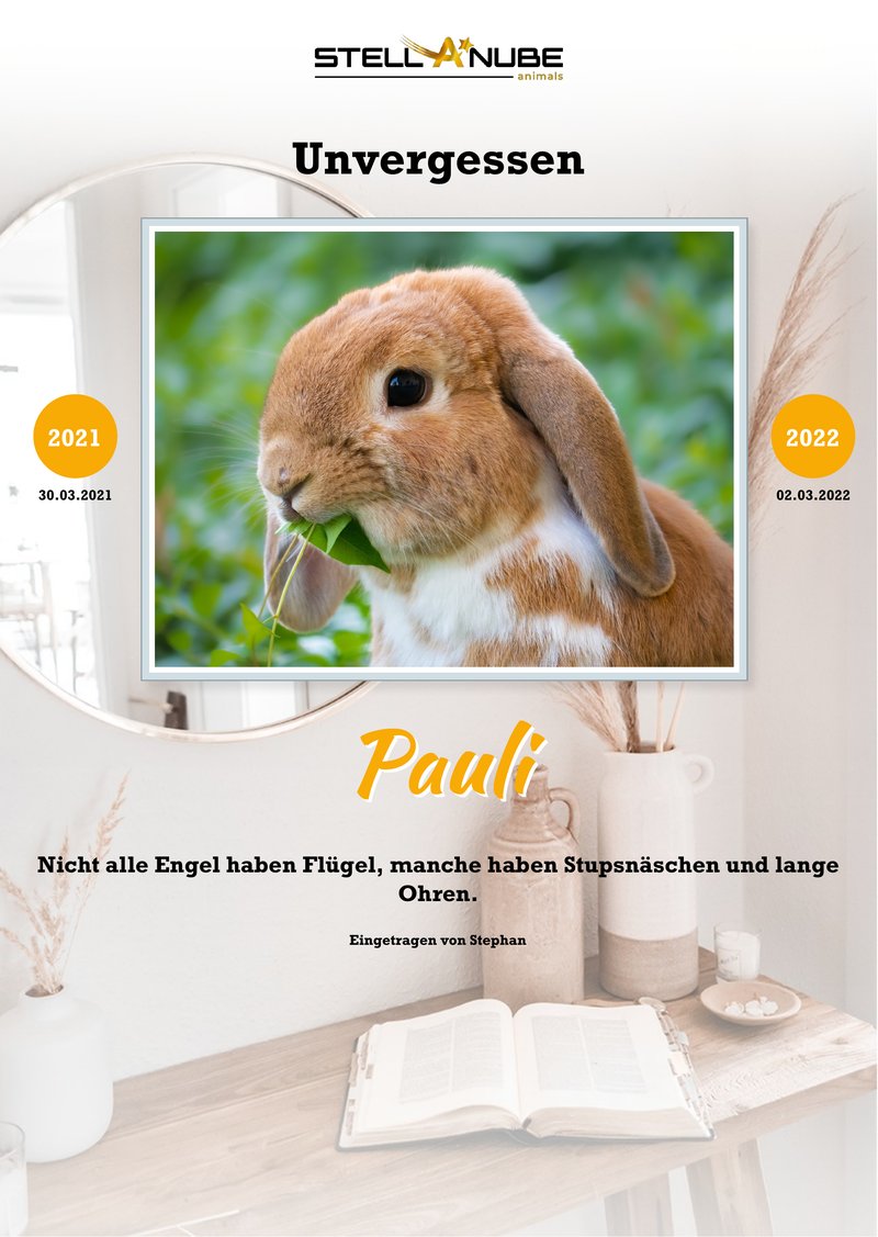 Wir sind eine Plattform, die sich auf Nachrufe für Tiere spezialisiert hat, um den Hinterbliebenen die Möglichkeit zu geben, ihr Tier zu ehren und Geschichten über sein Leben zu teilen.